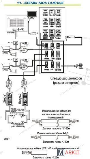 Подключение вызывных панелей 4-проводное