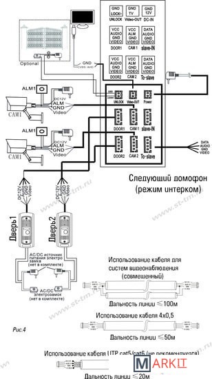| Подключение вызывных панелей | 4-проводное |