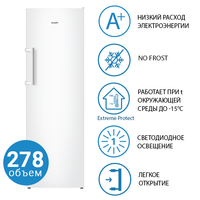Новая модель морозильников ATLANT 2022 года - серия ADVANCE.Высота модели М-7606-N 1868 мм, общий объем 278 л.В морозильнике предусмотрено 8 отделений различной вместительности.Преимущества наличия системы No Frost в морозильнике ATLANT: равномерное распределение охлажденного воздуха; быстрое охлаждение продуктов; отсутствие инея в морозильнике.Новый дизайн: конструкция двери High Door, лаконичные формы, эргономичная вертикальная ручка-скоба, верхняя корзина с откидной панелью для удобства эксплуатации.Улучшены потребительские свойства холодильника: электронное управление Touch Control, LED освещение, режим суперзамораживания, наличие звуковой сигнализации с возможностью ее отключения.Более эффективно организовано пространство: наличие поддона для замораживания ягод и др. мелких продуктов, увеличенного отделения Big Box для замораживания и хранения крупногабаритных продуктов, двух емкостей Slim Space на двери морозильной камеры, формы для льда.Максимальный диапазон климатических классов: SN, N, ST, T (стабильная работа при температуре окружающей среды от 10 до 43°C).