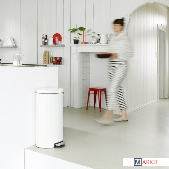 Экономия места – бак удобно устанавливается вплотную к стене или кухонному шкафу.Бесшумное закрывание и мягкий ход педали.При открывании крышка не касается стены.При открывании вручную крышка фиксируется в открытом положении.Удобная очистка – съемное внутреннее ведро из пластика со складными захватами.Удобная смена мешков для мусора – фиксации внутреннего ведра в «поднятом» положении.Бак удобно перемещать – гибкая ручка для переноски.Предохранение пола от повреждений – пластиковое защитное основание.Всегда опрятный вид – в комплекте идеально подходящие по размеру мешки для мусора PerfectFit (размер G).