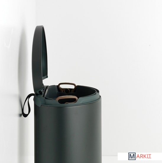 Экономия места – бак удобно устанавливается вплотную к стене или кухонному шкафу.Бесшумное закрывание и мягкий ход педали.При открывании крышка не касается стены.При открывании вручную крышка фиксируется в открытом положении.Удобная очистка – съемное внутреннее ведро из пластика со складными захватами.Удобная смена мешков для мусора – фиксации внутреннего ведра в «поднятом» положении.Бак удобно перемещать – гибкая ручка для переноски.Предохранение пола от повреждений – пластиковое защитное основание.Всегда опрятный вид – в комплекте идеально подходящие по размеру мешки для мусора PerfectFit (размер G).