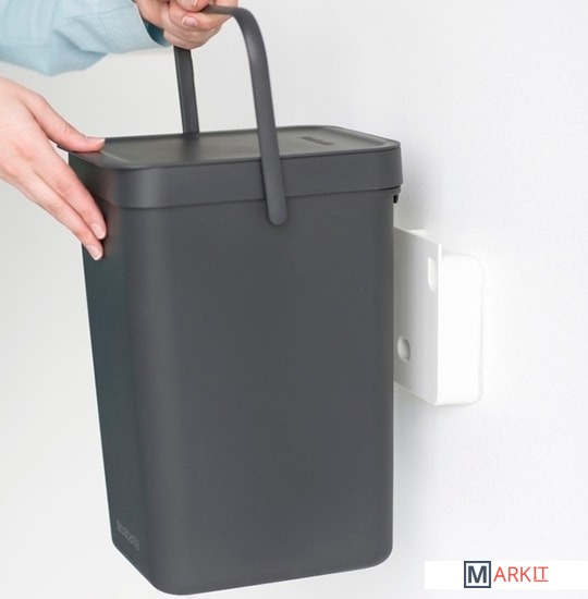 Идеальное решение для раздельного сбора домашних отходов.Может использоваться на полу или крепиться к стене – в комплект входит настенный держатель.Прочная ручка и удобный захват снизу для удобства освобождения от мусора.Имеются идеально подходящие по размеру мешки PerfectFit (размер C) – удобно устанавливаются в ведро.Также предлагаются идеально подходящие по размеру биоразлагаемые мешки для компостируемых отходов (размер С) – удобно устанавливаются в ведро.