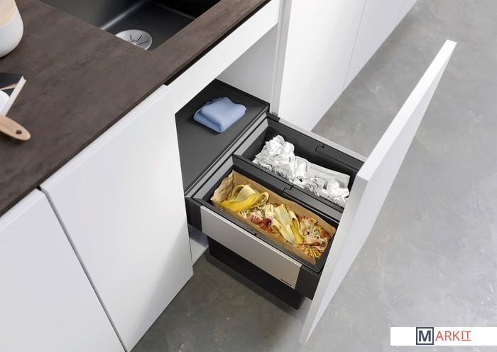 - современный, гармоничный и функциональный дизайн;- система с внешней рамкой, сочетающиеся материалы;- высококачественная выдвижная система для всех стандартных размеров шкафов;- легкий доступ для очистки шкафа и всех частей системы;- несравненно быстрый и простой монтаж;- модели с маленькими ведрами и крышками идеально подходят для сбора органических отходов.