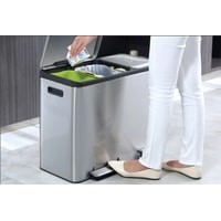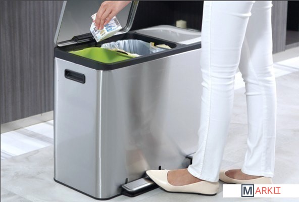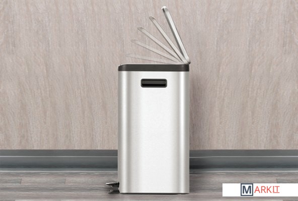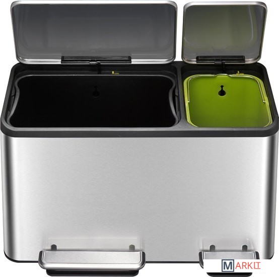 Мусорное ведро EKO Ecocasa EK9128 с корпусом из брашированной нержавеющей стали и 2-мя педалями, предназначенное для сортировки мусора. Благодаря специальному защитному слою на поверхности не остается следов отпечатков пальцев и подтеков. Внутри находится 3 съемных пластиковых контейнера для сбора мусора с удобной фиксацией мусорных пакетов. Данная модель оснащена крышкой, которая поднимается на 90 градусов при нажатии на педаль, при снятия ноги с педали крышка плавно и бесшумно опускается. При замене мусорных пакетов крышка может фиксироваться в открытом положении.
