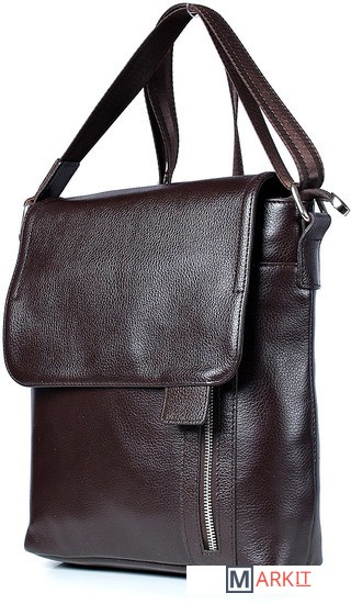 Сумка из натуральной кожи закрывается на застежку-молнию и клапаном на замок-магнитку, с декоративной строчкой и цупфером на клапане, на задней стенке карман, закрывающийся на застежку-молнию, с регулирующимся по длинне плечевым ремнем, с боковыми держателями на пряжке, с открытым объемным карманом и карманом закрывающийся на застежку-молнию на передней стенке. Сумка на подкладке, с подвесным карманом, закрывающейся нв застежку-молнию.
