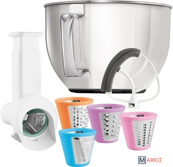 | Комплектация | - чаша 4.5 л;- венчик для перемешивания;- слайсер;- 5 насадок. |