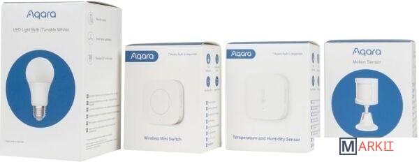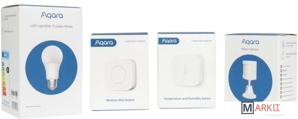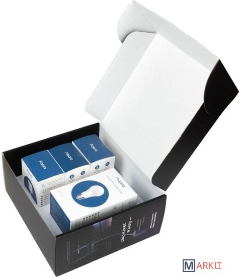 Комплектация Умная лампа Aqara LED Light Bulb (ZNLDP12LM)Датчик движения и освещения Aqara Motion Sensor (RTCGQ11LM )Датчик температуры и влажности Aqara Temperature and Humidity Sensor (WSDCGQ11LM )Беспроводная кнопка Aqara Wireless Mini Switch (WXKG11LM)