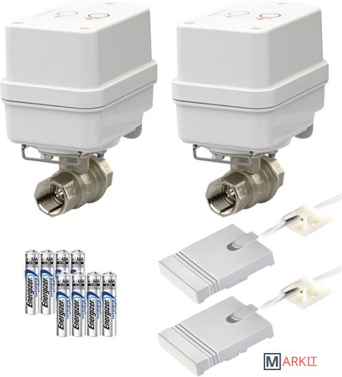 Комплект Gidrоlock Winner Tiemme 3/4" (2 электропривода) служит для своевременного оповещения в случае появления протечки воды, а также автоматически перекрывает подачу воды при помощи шаровых электроприводов (идут в комплекте).