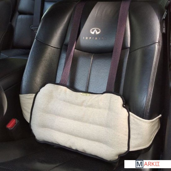 Материал: натуральный лен.Поддержка поясницы.Снятие напряжения при длительных поездках.Удобное крепление к спинке.