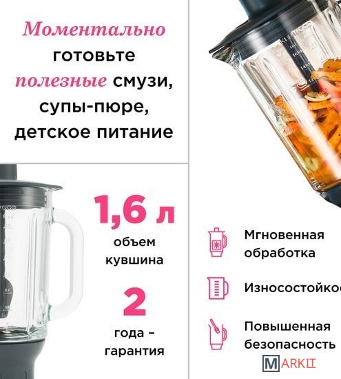 | Комплектация | блендер, ножи, палочка для перемешивания. |