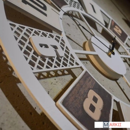 Оригинальные настенные часы с бесшумным механизмом. Тектурная эффектная окраска. Плавный ход стрелок, экологичные материалы - дерево.