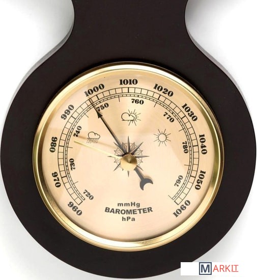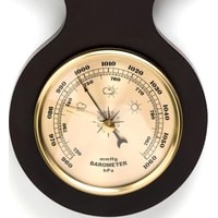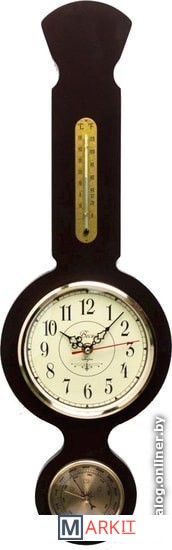 Часы имеют изящную привлекательную форму корпуса и циферблат с четкими арабскими цифрами, которые будут видны издалека. Корпус выполнен из натурального дерева с лаковым покрытием. Циферблат закрыт стеклом. Установлен качественный кварцевый механизм с плавным тихим ходом. В корпус часов встроены термометр и барометр. Питание от одной батарейки типа ААА (не входит в комплект)