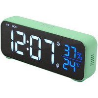 Особенности:— Современный дизайн— Возможность работы от аккумулятора/USB/сети— Яркие, заметные издали цифры— Регулируемая яркость— Запоминание настроек при отключении питания— Качественный приятный звук будильника— Встроенный термометр и гигрометр— USB-выход для зарядки гаджетов— Возможность настройки разных режимов будильника (будни/выходные)