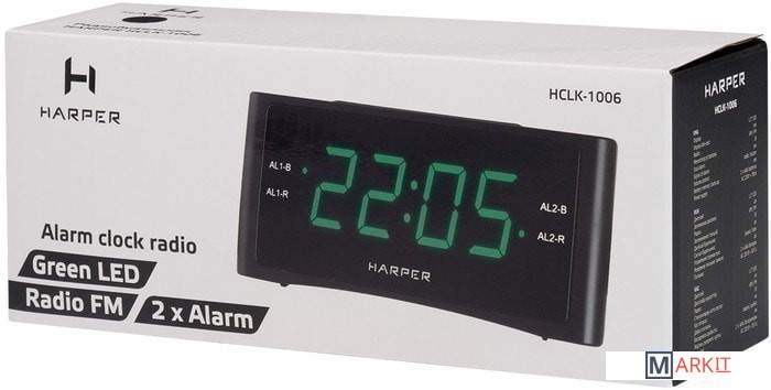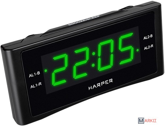 Если вам нужен не просто стильный аксессуар для спальни, но и функциональный будильник – вам определённо понравится Harper HCLK-1006. Устройство объединяет сразу несколько важных в обиходе устройств: цифровые часы, два независимых будильника, удобный ночник с гибко регулируемой подсветкой (при желании дисплей можно вообще отключить) и AM/FM-радиоприёмник (в памяти можно сохранить до 20 каналов, любой из них можно выбрать вместо стандартной мелодии будильника). Если вы любите засыпать под звуки радио, у Harper HCLK-1006 есть функция автоотключения (от 10 до 90 минут).Диапазоны тюнера FM: 64-108 МГц.Диапазоны тюнера AM: 522 – 1620 КГц.