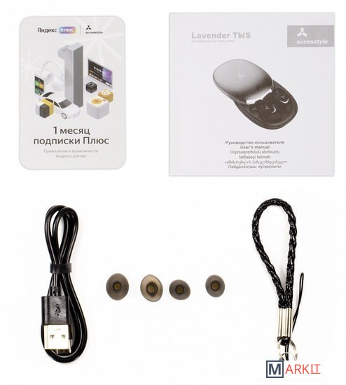 зарядный кейс, кабель для зарядки, шнурок-фиксатор |
