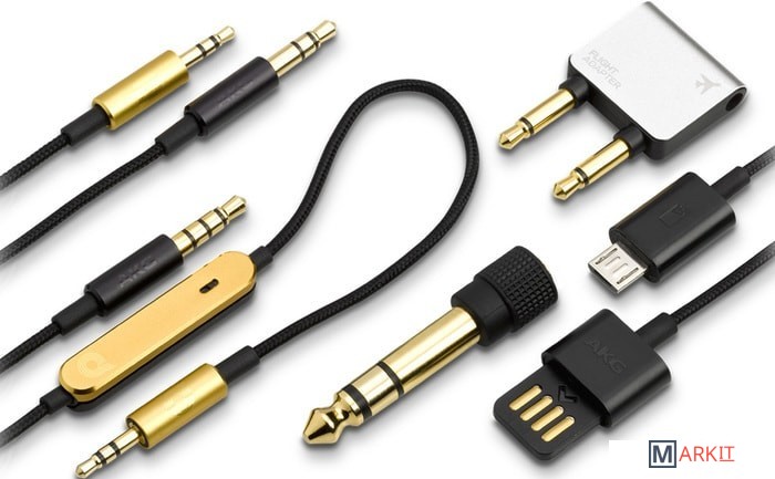 чехол, гарнитурный кабель, кабель для зарядки, переходник на 6.3 мм, переходник для самолета (два штекера 3.5 мм), дополнительный аудиокабель, портативное зарядное устройство (пауэрбанк)