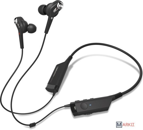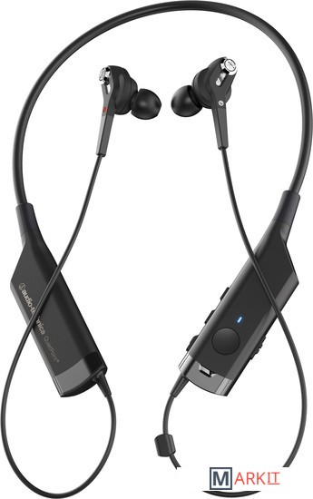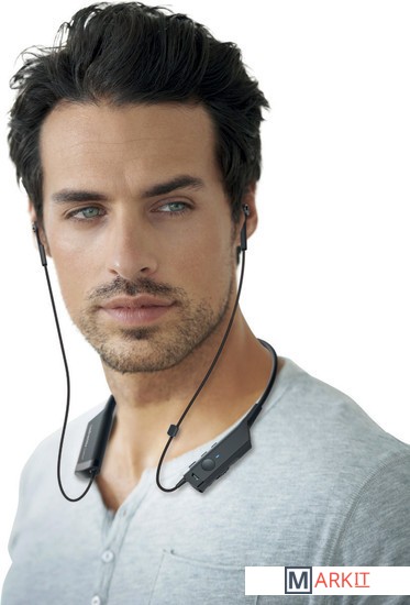 Беспроводные наушники с активным шумоподавлением, имеющие внутриканальную конструкцию и снабженные шейной дужкой.