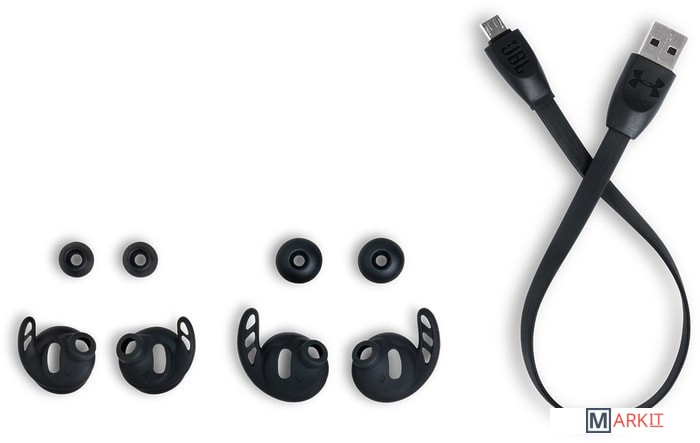 зарядный кейс, кабель для зарядки, ушные фиксаторы / зарядный кейс, кабель для зарядки