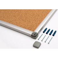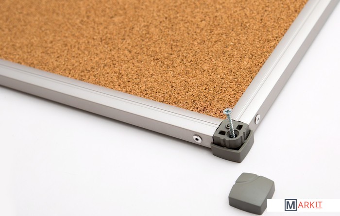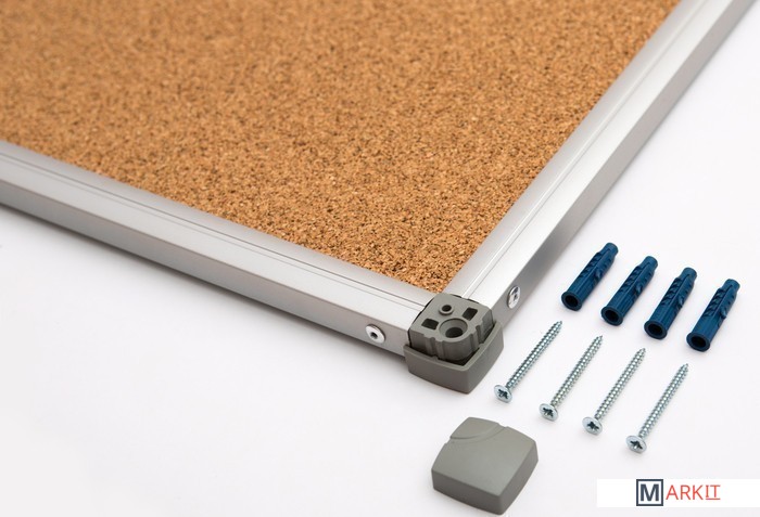 Пробковая доска в рамке Standart. Поверхность доски из натуральной мелкозернистой пробки. Возможность прикрепления информации с помощью кнопок-гвоздиков и булавок. Рамка из анодированного алюминия с пластмассовыми уголками. Скрытое крепление к стене в четырех углах.