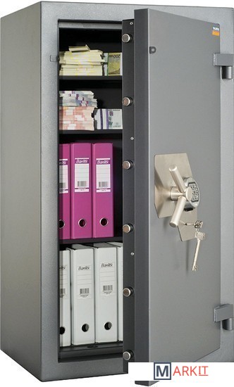 – при заливке двери и корпуса используется запатентованная система армирования бетона-запатентованная многослойная защита стенки и двери сейфа– 3-х сторонняя усиленная ригельная система запирания– защита замков и ригелей от высверливания и выбивания– система блокировки ригельного механизма при выбивании замка– устройство для опечатывания– комплектуются кодовым электронным замком PS 600 (ПРОМЕТ, класс В, ГОСТ, ECB-S) + ключевой KABA MAUER (класс В, ГОСТ)– наличие анкерного крепления к полу. Анкерный болт в комплекте– опция: установка трейзера