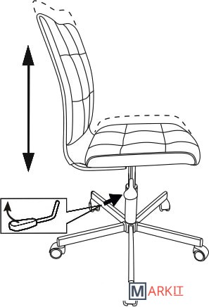 Колеса оснащены тормозом безопасности, реагирующим на изменение давления: стул не откатывается, когда вы садитесь или встаете.