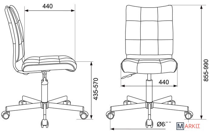 Колеса оснащены тормозом безопасности, реагирующим на изменение давления: стул не откатывается, когда вы садитесь или встаете.