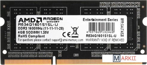 Markit » Оперативная память » Оперативная память AMD Radeon R5 Entertainment Series 4ГБ DDR3 1600 МГц R534G1601S1SL-U