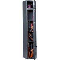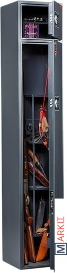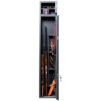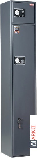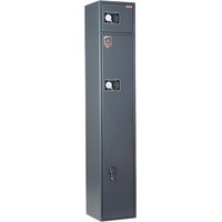 Предназначен для хранения огнестрельного оружия.- толщина металла корпуса и двери – до 2 мм- оборудован патронным отделением, запирающимся на ключ, полками и ложементами для ружей- комплектуется одним кодовым электронным замком PLS-3.2 (Промет) + двумя ключевыми замками- максимальная высота ствола 1372 мм- наличие анкерных отверстий для крепления сейфа к стене