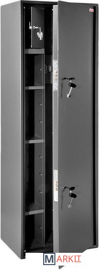 Предназначен для хранения огнестрельного оружия. - толщина металла корпуса и двери – до 2 мм- оборудован патронным отделением, запирающимся на ключ, полками и ложементами для ружей- комплектуется двумя ключевыми замками- максимальная высота ствола 1217 мм- наличие анкерных отверстий для крепления сейфа к стене