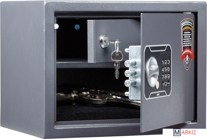 - Предназначен для размещения 1-2 единиц короткоствольного оружия, а также для хранения документов и незначительных ценностей дома и в офисе.- Корпус изготовлен из стального листа толщиной 1.2 мм, толщина лицевой панели – 2.8 мм.- Дверь запирается электронным замком PLS-3. Замок оборудован системой аварийного открывания (в комплекте есть мастер-ключ).- Внутри сейфа установлен трейзер (запираемое на ключ отделение для боеприпасов) размерами 112x297x195 мм.- Конструкция сейфа предусматривает возможность анкерного крепления к полу и стене.- На поверхность сейфа нанесено защитное износостойкое покрытие порошкового типа.