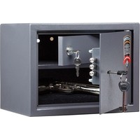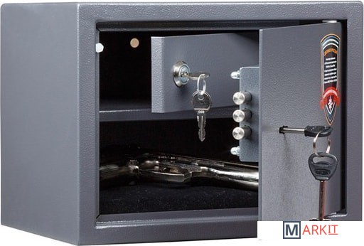 - Предназначен для размещения 1-2 единиц короткоствольного оружия, а также для хранения документов и незначительных ценностей дома и в офисе.- Корпус изготовлен из стального листа толщиной 1.2 мм, толщина лицевой панели – 2.8 мм.- Дверь запирается ключевым замком.- Внутри сейфа установлен трейзер (запираемое на ключ отделение для боеприпасов) размерами 112x297x195 мм.- Конструкция сейфа предусматривает возможность анкерного крепления к полу и стене.- На поверхность сейфа нанесено защитное износостойкое покрытие порошкового типа.