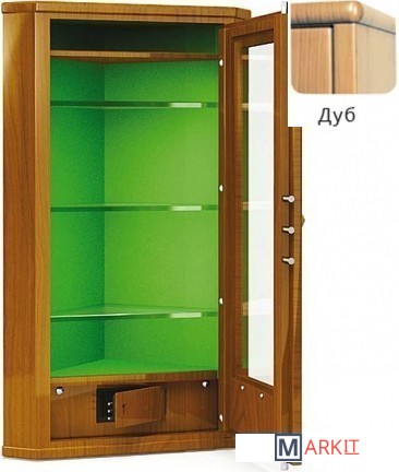 Угловой сейф открывает дополнительные возможности при создании дизайна интерьера оружейной комнаты, кабинета или гостиной. Идеальный вариант для эргономичного помещения. Бронированное стекло открывает взору содержимое сейфа, которое надежно заперто за стальной рамой замком.