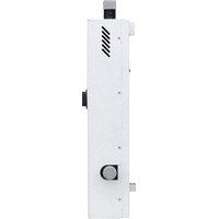 Электрокотел состоит из корпуса, стальной ёмкости, пульта управления, закрепленного внутри корпуса. В нижней части ёмкости, во фланце, смонтированы трубчатые электронагреватели. Элeктрoкoтёл имеет встроенный пульт управления, предназначенный для переключения мощности и регулирования температуры нагрева теплоносителя. Регулятором температуры элeктрoкoтла служит капиллярный термостат, термочувствительный элемент которого закреплен в средней части стальной ёмкости (резервуара). Для защиты от перегрева электроводонагреватель оборудован аварийным термостатом с механическим возвратом, расположенным в верхней части колбы котла. Верхний напорный и нижний обратный патрубки предназначены для присоединения водонагревателя к системе отопления. На лицевой стороне водонагревателя расположена ручка регулятора температуры нагрева воды и клавиши включения мощности. На нижней части корпуса имеется сальник для ввода в водонагреватель питающего кабеля. Болт для крепления заземляющего провода расположен внутри корпуса на кронштейне крепления колбы котла.