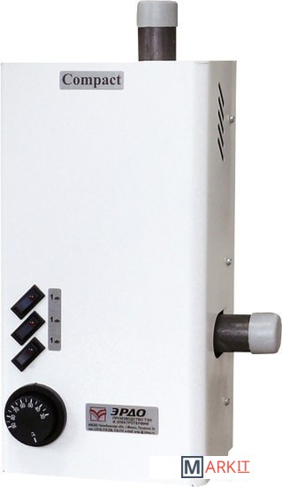 Электрокотел состоит из корпуса, стальной ёмкости, пульта управления, закрепленного внутри корпуса. В нижней части ёмкости, во фланце, смонтированы трубчатые электронагреватели. Элeктрoкoтёл имеет встроенный пульт управления, предназначенный для переключения мощности и регулирования температуры нагрева теплоносителя. Регулятором температуры элeктрoкoтла служит капиллярный термостат, термочувствительный элемент которого закреплен в средней части стальной ёмкости (резервуара). Для защиты от перегрева электроводонагреватель оборудован аварийным термостатом с механическим возвратом, расположенным в верхней части колбы котла. Верхний напорный и нижний обратный патрубки предназначены для присоединения водонагревателя к системе отопления. На лицевой стороне водонагревателя расположена ручка регулятора температуры нагрева воды и клавиши включения мощности. На нижней части корпуса имеется сальник для ввода в водонагреватель питающего кабеля. Болт для крепления заземляющего провода расположен внутри корпуса на кронштейне крепления колбы котла.