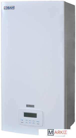ЭВАН EXPERT – это обновленный и улучшенный электрический котел нового поколения, обеспечивающий самое экономичное энергопотребление и самые комфортные условия подключения и эксплуатации. Уникальный алгоритм нагрева, который использует прибор, основан на анализе уличной и комнатной температуры. Соответствующие датчики входят в комплект поставки. Постоянный мониторинг метеоусловий и мгновенная реакция на изменения как во внешней среде, так и внутри помещения позволяют электрокотлу поддерживать заданные климатические параметры в помещении максимально точно с минимальным потреблением электроэнергии. Прибор сам выбирает требуемую температуру теплоносителя и необходимое число задействованных ступеней мощности. Вмешательства человека в процесс нагрева не требуется. Необходимо лишь установить желаемую температуру в помещении, для чего в котле предусмотрено несколько различных режимов, в том числе и режим недельного программирования, при помощи которого можно выставить температуру воздуха для каждого дня и часа недели. ЭВАН EXPERT по комплектации представляет собой миникотельную, в которой уже есть всё необходимое, - встроенный циркуляционный насос, расширительный бак, воздухоотводчик. Многоступенчатая система защиты обеспечивается аварийным самовозвратным датчиком (защита от перегрева), предохранительным клапаном (защита от избыточного давления), автоматическим выключателем (защита от токов короткого замыкания). Благодаря контролю наличия фаз при пропадании одной из фаз автоматика и органы управления котла переключаются на работу оставшейся. При этом автоматика учитывает излишнюю переработку силовых реле и ТЭНов на оставшихся фазах, и при восстановлении нормального питания равномерность расхода восстанавливается. ЭВАН EXPERT может управлять работой косвенного бойлера ГВС (приобретается отдельно). Управление реализовано по принципу приоритета нагрева воды для водоснабжения. То есть, если температура воды в бойлере опускается ниже заданного значения, котел путем переключения трехходового клапана направляет поток теплоносителя в змеевик водонагревателя. Ещё одна отличительная черта нового электрокотла – расширенные сервисные возможности. Сервисное меню ЭВАН EXPERT имеет уникальный режим отладки, при помощи которого можно проверить срабатывание каждого из органов управления. Главными отличиями нового ЭВАН EXPERT от предыдущей его версии являются: расширенная линейка ступеней мощности; патрубки отодвинуты от стены и оставлено пространство для операций гаечного ключа; глянцевое покрытие кожуха и внешний вид сегмента «премиум»; более жесткая конструкция, выше прочность при транспортировке и монтаже; закладная: котел гораздо легче монтировать; уменьшенные габариты: котлы экономично паллетируются на европаллет; передняя панель сверху на защелках, саморезы только внизу; монтажнику можно быстро провести диагностику и небольшие работы.