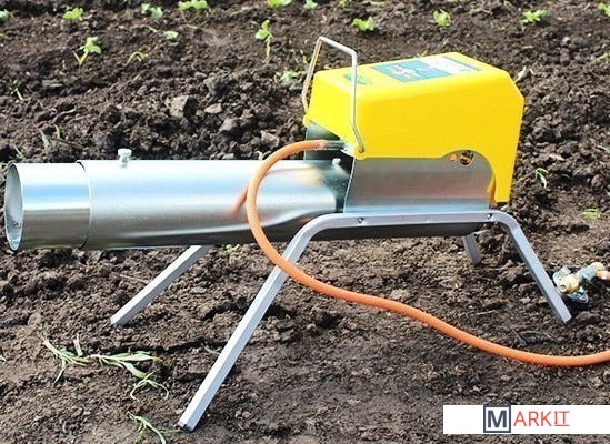Автоматическая гром-пушка "Zon Mark 4" с телескопическим стволом, которая предназначена для защиты садов, полей, аэродромов и водохранилищ от пернатых на площади до 2 гектаров (20 234 кв. м, 202 сотки, 5 акров или, примерно, 3 футбольных поля).