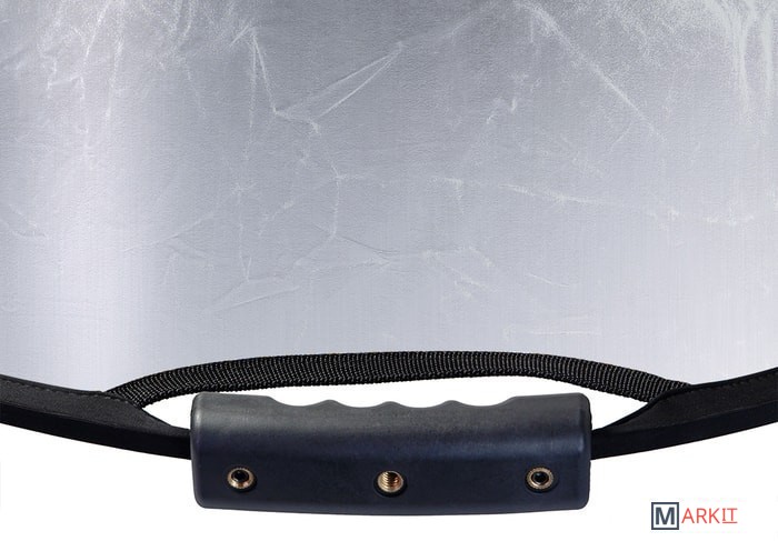 Односторонний круглый отражатель, цвет - серебристый. Диаметр 82 см, используется в предметной и портретной съемке, а также для подсветки отдельных участков кадра.Серебристая поверхность отражателя используется для отражения жестким светом, что позволяет получать контрастное изображение с четкими тенями. Высокий коэффициент отражения делает эту поверхность одной из часто используемых, найдет применение даже в пасмурную погоду.Стальной упругий каркас прошит по периметру капроновым карманом, диаметр отражателя в сложенном виде – 30 см. Две рукоятки, закрепленные на каркасе, оборудованы отверстиями с резьбой 1/4", что позволяет закрепить отражатель на штативах, стойках или любых других опорах, без использования специального держателя.