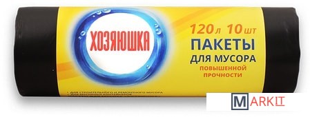 Markit » Пакеты для мусора » Пакеты для мусора Хозяюшка повышенной прочности 120л (10шт, черный)