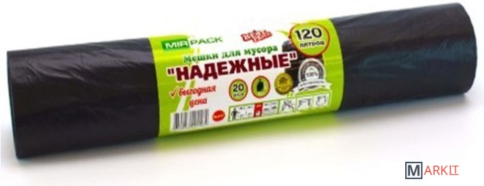 Markit » Пакеты для мусора » Пакеты для мусора Mirpack Надежные 25 мкм 120 л (20 шт)