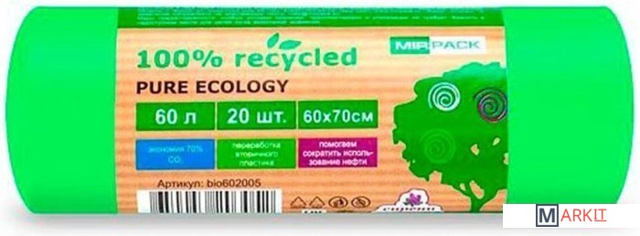 Markit » Пакеты для мусора » Пакеты для мусора Mirpack Pure Ecology Био 12 мкм 60 л (20 шт)