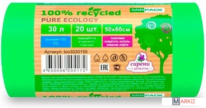 Markit » Пакеты для мусора » Пакеты для мусора Mirpack Pure Ecology Био 30 мкм 30 л (20 шт)