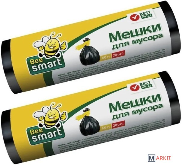 Markit » Пакеты для мусора » Пакеты для мусора Paclan Bee Smart с завязками (60 л, 20 шт)