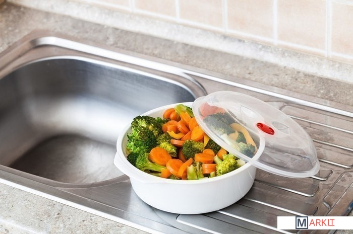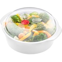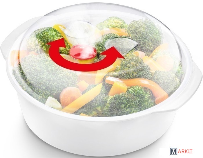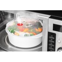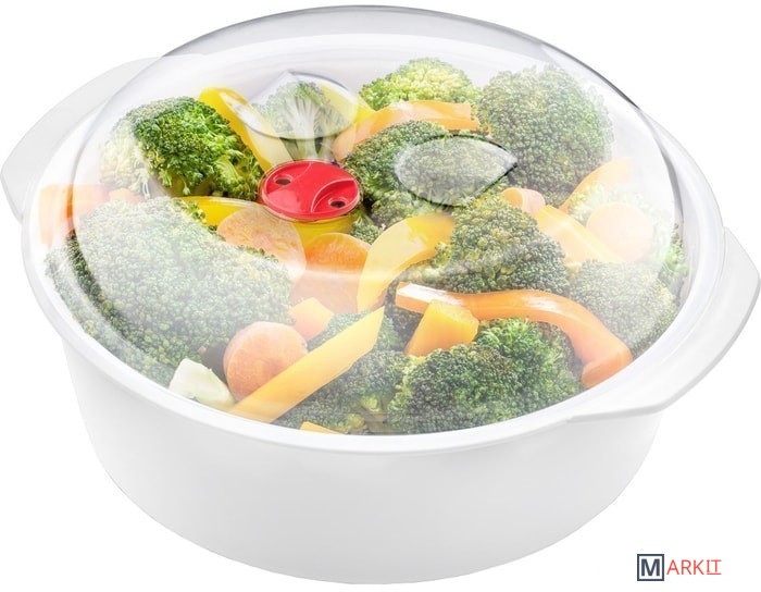 Прочный многофункциональный пластмассовый контейнер предназначен для нагрева продуктов в микроволновой печи.Контейнер имеет плотную крышку с паровым отверстием и паровой решеткой.Данный контейнер можно помещать в холодильники и морозильные камеры.Диаметр: 22 см.Высота: 10 см.