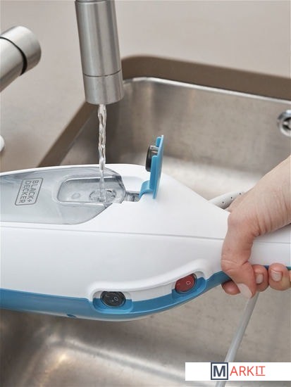 Встроенный резервуар для воды оснащен внутренним фильтром предохраняющим попадание вместе с водой нежелательного мусора во внутрь нагревательного элемента.Корпус щетки легко разбирается на парогенератор, чистящую напольную головку и ручку. Такая конструкция позволяет легко хранить или транспортировать пароочиститель, а также использовать паровую щетку в качестве компактного парогенератора для очистки различных поверхностей.Система намотки кабеля на корпус щетки для максимального удобства в эксплуатации.