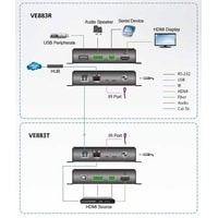 VE883RK2-AT-G – Приемник Оптического Удлинителя ATEN VE883, 4K HDMI Optical Extender (4K@10км (K2, SM)), предназначенный для расширения расстояния передачи несжатого 4K-сигнала до 10 километров.Удлинитель VE883 соответствует спецификациям HDMI, поддерживая функции 3D, Deep Color (до 12 бит) и скорость передачи данных до 10,2 Гбит/с, обеспечивая превосходное качество изображения. Благодаря эксклюзивной технологии FarSmooth компании ATEN удлинитель VE883 предотвращает запаздывание и замирание изображения, выравнивая скорость входящего и исходящего потока. Это гарантирует стабильный, плавный и идентичный с источником видеовывод, что особенно важно при использовании на больших расстояниях, где требуются непрерывность видеопотоков. VE883 оснащен HDMI-входом и выходом, аналоговым аудиовходом и выходом, портом USB2.0, двунаправленным ИК-портом, управляющим портом RS-232, а также портом для подключения Gigabit Ethernet. Для соединения по схеме «точка-точка» (point-to-point) к удлинителю VE883 может быть подключен волоконно-оптический кабель, при установке модулей SFP+ в его оптический порт.Используя дуплексное оптическое волокно совместно с удлинителем VE883, можно получить простое и быстрое решение для оптимальной передачи сигналов Ethernet, ИК, HDMI, RS-232 и USB на расстояние до 10 километров, одновременно избежав нагромождения кабелей. Обеспечивая прозрачную передачу USB-сигналов, удлинитель VE883 является совместимым с широким диапазоном периферийных USB-устройств.При разработке удлинителя VE883 учтены новейшие тенденции в увеличении расстояния и передаче без потерь 4K-сигнала. Поэтому он подходит для применений, где требуется большая дистанция и при этом допускаются небольшие помехи, таких как транспортные станции и современные офисные здания.