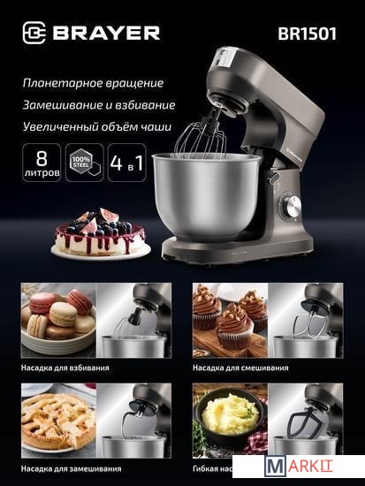 Markit » Кухонные комбайны, машины и планетарные миксеры » Планетарный миксер Brayer BR1501