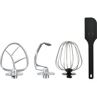 миксер, чаша из нержавеющей стали, крышка чаши, крючок для замеса теста, лопатка для перемешивания, венчик для взбивания, лопатка, гарантийный талон, инструкция на русском языке