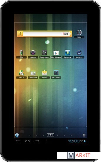 7" планшет оснащен емкостным экраном с разрешением 800х480 пикселей. Устройство работает на базе OS Android 4.0 и процессора с 3D-ускорителем Boxchip A13, частота 1.2 ГГц. Также, данный планшетный компьютер поставляется с множеством аксессуаров, включая кабели OTG и USB.