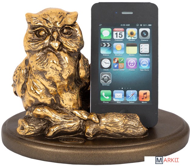 В древнегреческой мифологии сова являлась атрибутом богини мудрости Афины, носившей эпитет «совоокая». Изображения богини и ее крылатой спутницы чеканились на серебряных rреческих монетах, именовавшихся в просторечии «совами». Символом мудрости и познания сова стала в силу того, что ее природное поведение напоминало эллинам образ жизни стремящихся к уединению философов, а способность совы видеть в темноте сделала ее символом проницательности.Подставка для телефона станет прекрасным подарком, который не просто станет великолепным украшением вашего дома, но будет нести практическую пользу. Вам не придется искать телефон, вы всегда будете знать, где он. Наша Сова будет бережно “охранять” его. Подставку можно поставить в кабинете,спальне, гостиной, на кухне - везде она будет смотреться гармонично и радовать хозяев и гостей.Фигурка совы изготовлена вручную мастерами «BOGACHO» из литьевого мрамора.