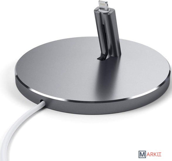 Нижняя часть подставки имеет силиконовое покрытие, которое обеспечивает ей устойчивость практически на любой поверхности. Кабель Lightning аккуратно прокладывается в специальном кабель-канале (в комплект поставки не входит и приобретается отдельно).